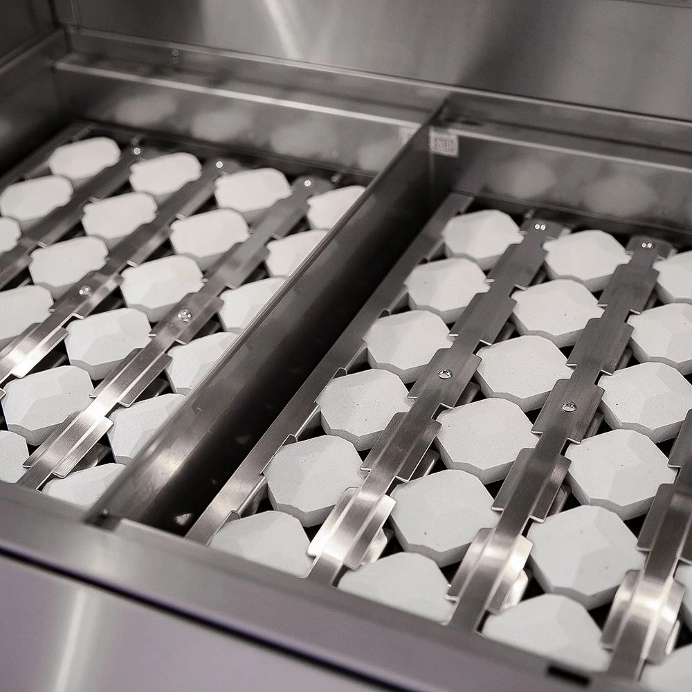 - Captured Briquette Trays – Unique ceramic briquettes sit above the burner to provide radiant heat and eliminate hot/cold zones across the 855in² cooking surface