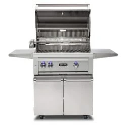 American Outdoor Grill T-Series 30 Inch Gas Grill On Cart makes a terrific centerpiece for your outdoor kitchen – it’s designed and manufactured for long-lasting performance. The 30″ AOG features a complete 304 stainless steel construction to ensure durability and longevity while offering a large 540 square inch grilling surface and an additional warming rack, with (3) 13,300 stainless steel burners that put out some serious heat. Add the optional 10,000 BTU rear backburner to provide added versatility, allowing you to enjoy the savory flavors created by the rotisserie. The stainless steel vaporizer panels provide even heat distribution to prevent hot & cold spots and also prevent flare ups, while the custom designed analog thermometer features a stainless steel bezel for high quality temperature control. All of AOG’s grills provide the same 15-Year warranty on the stainless steel burners, and a 10-Year warranty on all stainless steel parts (excluding the vaporizer panels). The cart model features a 12,000 BTU side burner, durable 2.5″ wheels and comes fully assembled, save the side shelves, to provide years of outdoor grilling joy – perfect to bring your friends and family together.