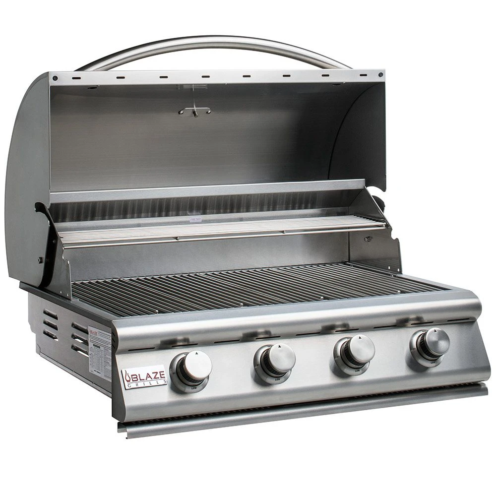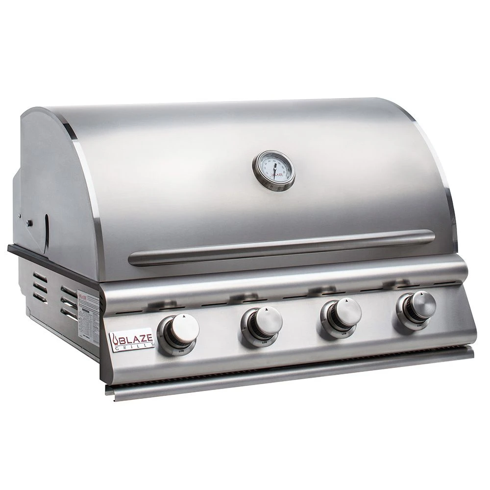 Blaze BLZ-4LBM Stainless Steel Built-In 4-Burner Gas Grill, 32-inch offers the perfect grill for any entry-level griller. Featuring 304 stainless steel construction, this grill features premium durability and is even approved for multi-user settings, so you know your grill can withstand the rigors of frequent use. The quality grill hood is also double-lined to protect from heat discoloration to keep your grill looking and performing like new. Inside the grill, durable searing rods enhance your grilling experience, while stainless steel heat zone separators allow for different types of cooking zones across the grill surface–grill either directly or indirectly as you wish! The flame stabilizing grid minimizes flare-ups, while a full-width drip tray makes clean-up simple. This grill features 14,000 BTU of cooking power per burner for a total cooking surface of 56,000 BTUs. A push and turn flame-thrower ignition system makes ignition simple, while a backup flash tube ignition provides an alternate ignition option if necessary.