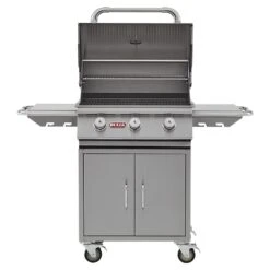 This grill includes a premium grill cart to match the C-Series grill head. This cart features self-closing doors and drawer hinges for a high-end feel. Fold down side shelves offer space when you need it and extra room when you don’t, while industrial-quality locking casters offer easy movement. An interior slide-out shelf offers the perfect space for propane tank storage (if applicable), and the entire cart comes fully assembled for easy installation.