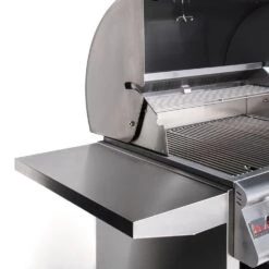 This grill includes a premium grill cart to match the S-series grill head. This cart features self-closing doors and drawer hinges for a high-end feel. Fold down side shelves offer space when you need it and extra room when you don’t, while industrial-quality locking casters offer easy movement. An interior slide-out shelf offers the perfect space for propane tank storage (if applicable), and the entire cart comes fully assembled for easy installation.