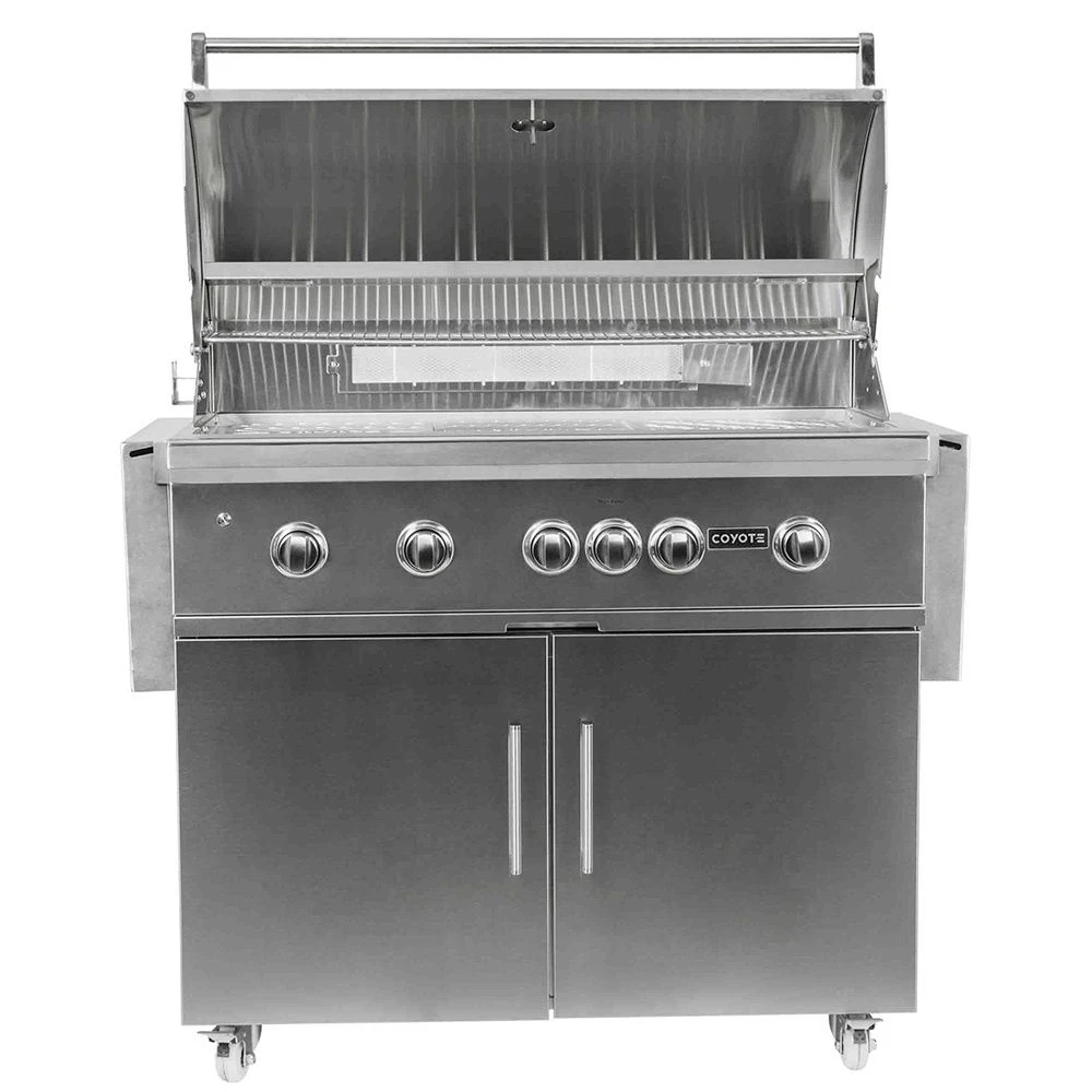 Coyote S-Series Stainless Steel Freestanding Gas Grill with Infrared Sear Burner & Rotisserie, 42-Inch (C2SL42-CT) provides a premium grilling option for your outdoor kitchen. The Coyote S-Series grill features complete 304 stainless steel construction and has been manufactured for high performance with four Coyote Infinity Burners, one Coyote RapidSear Burner and one infrared rear burner. Ceramic briquette heat control grids offer supreme radiant heating for better results across all 955 square inches of cooking space, while the included rotisserie kit and smoker box allow for expanded cooking options. Additional features include interior grill lighting for easier visibility in low-light conditions as well as LED illuminated control knobs. This base grill can also be upgraded with a variety of products and accessories custom built for this grill model (sold separately).
