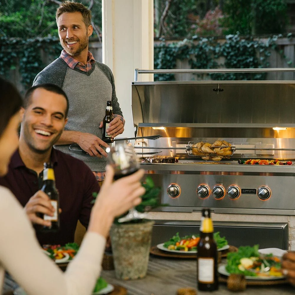 - Integrated interior lighting and LED illuminated control knobs make it easier to grill in low light conditions.
