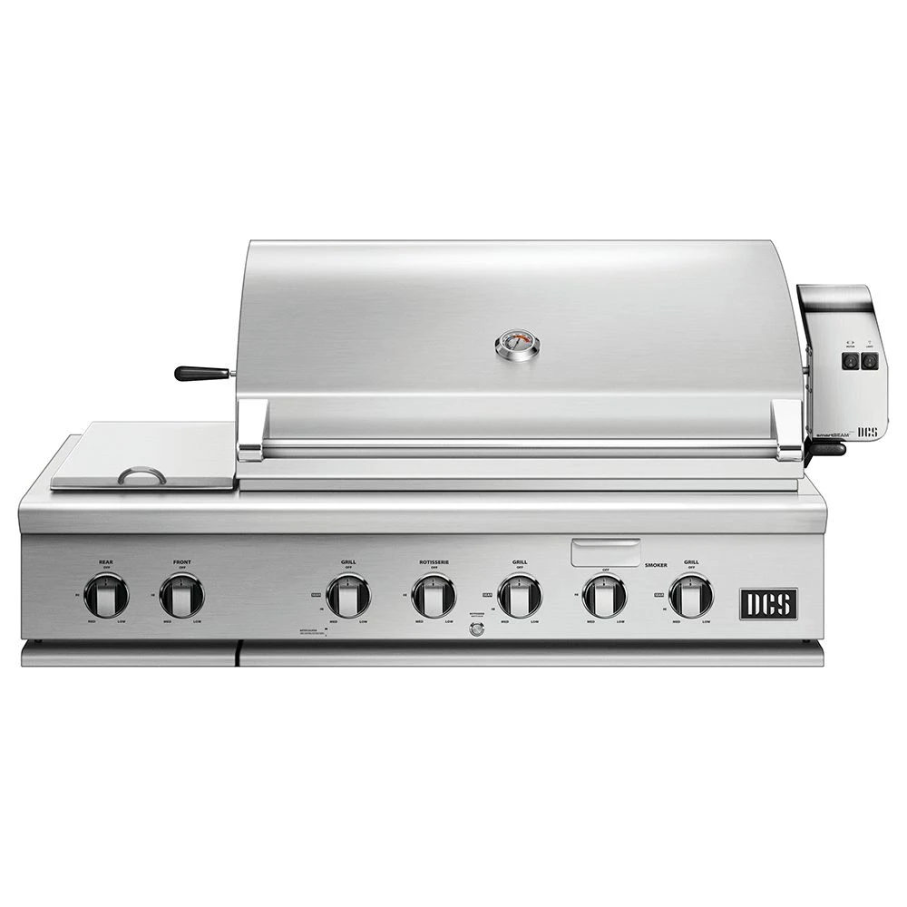 DCS BH1-48RS Series 7 48-Inch Built-In Gas Grill with Rotisserie and Side Burner offers one of the most advanced BBQ grills on the market featuring a superior design and high end quality for unparalleled cooking performance. This grill features a complete 304 stainless steel construction to provide maximum durability designed to withstand the rigors of the outdoors. The double sided cast stainless steel grill grates feature one side with a gentle radius for handling delicate foods while the other side features a W shape for perfect sear lines while the patented Grease Management Systemâ„¢ channels grease and oils away from the flames to prevent flare ups and simplify the cleaning process. The integrated double side burner provides added outdoor cooking versatility as the double 17,000 BTU burners allow you to cook your favorite side dishes as you’re grilling.