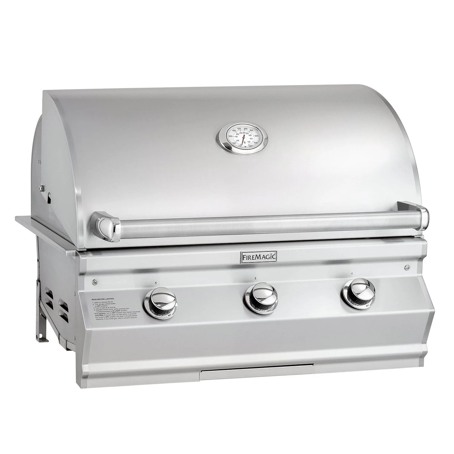 Fire Magic CM540i Choice Multi-User Built-In Grill, 30-Inch provides a superior built-in gas grill to help complete the ultimate patio paradise. Complete 304 stainless steel construction ensures a long lasting and durable product, while the Rapid Light electronic ignition provides a simple startup every time you’re ready to grill. Each of the (3) heavy gauge cast stainless steel burners provide an impressive 23,000 BTU output to offer some serious heat, while the analog thermometer keeps an accurate eye on the cooking temperature across the 540in² primary grilling surface. This grill features Fire Magic’s patented Diamond Sear Cooking Grid designed to optimally transfer heat from burners to the cooking surface to ensure your food cooks faster and more evenly, while Choice Flavor Grids assist with heat distribution and reduce flare-ups. A 90-degree double-walled hood provides efficient heat retention, while a Teflon-coated spring assist makes the hood easy to open to round out an impressive feature package. The high quality construction of the grill is equaled only by its beautiful design, featuring a satin stainless steel face plate to separate this Fire Magic grill from the rest of the pack.