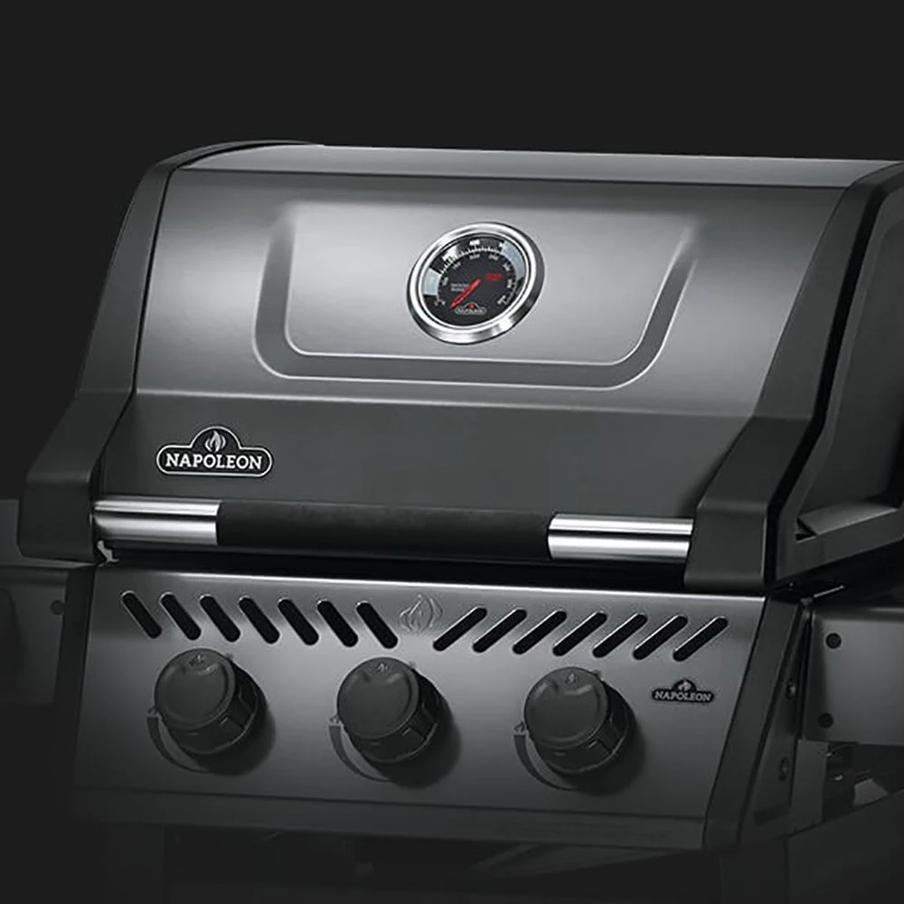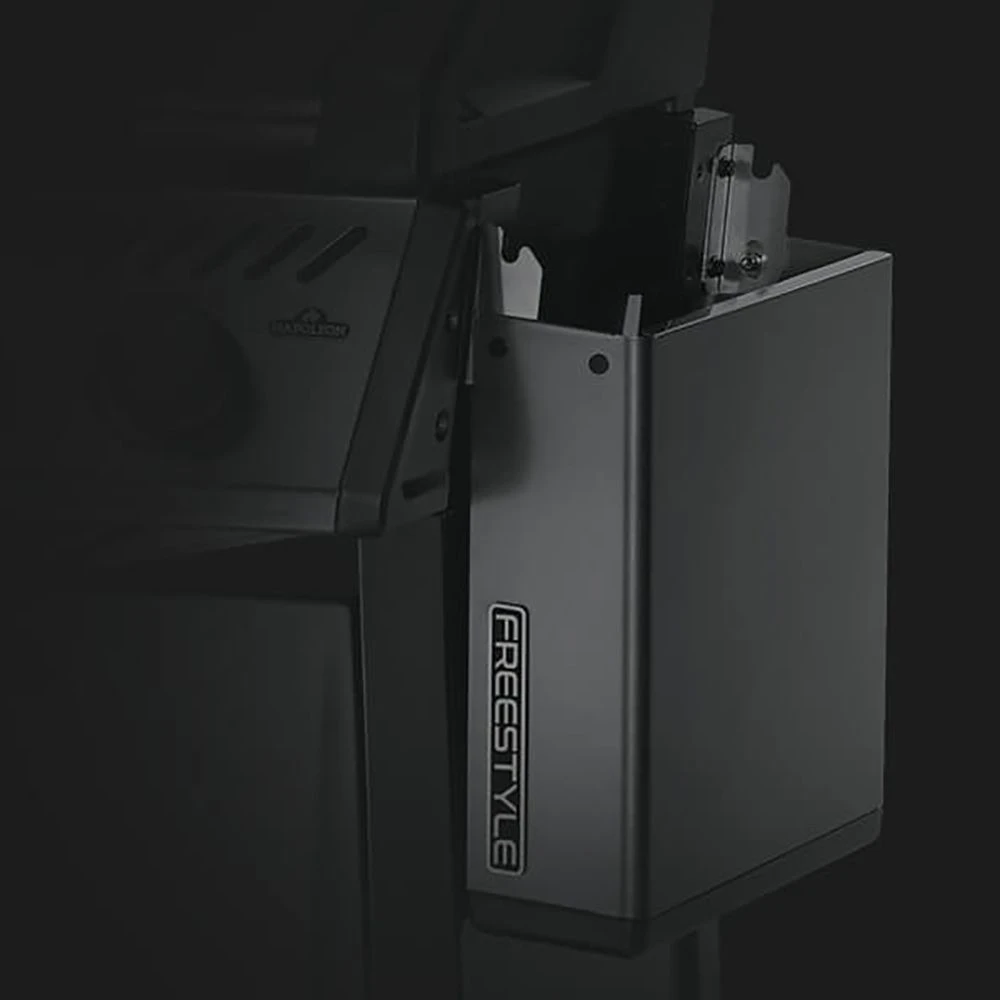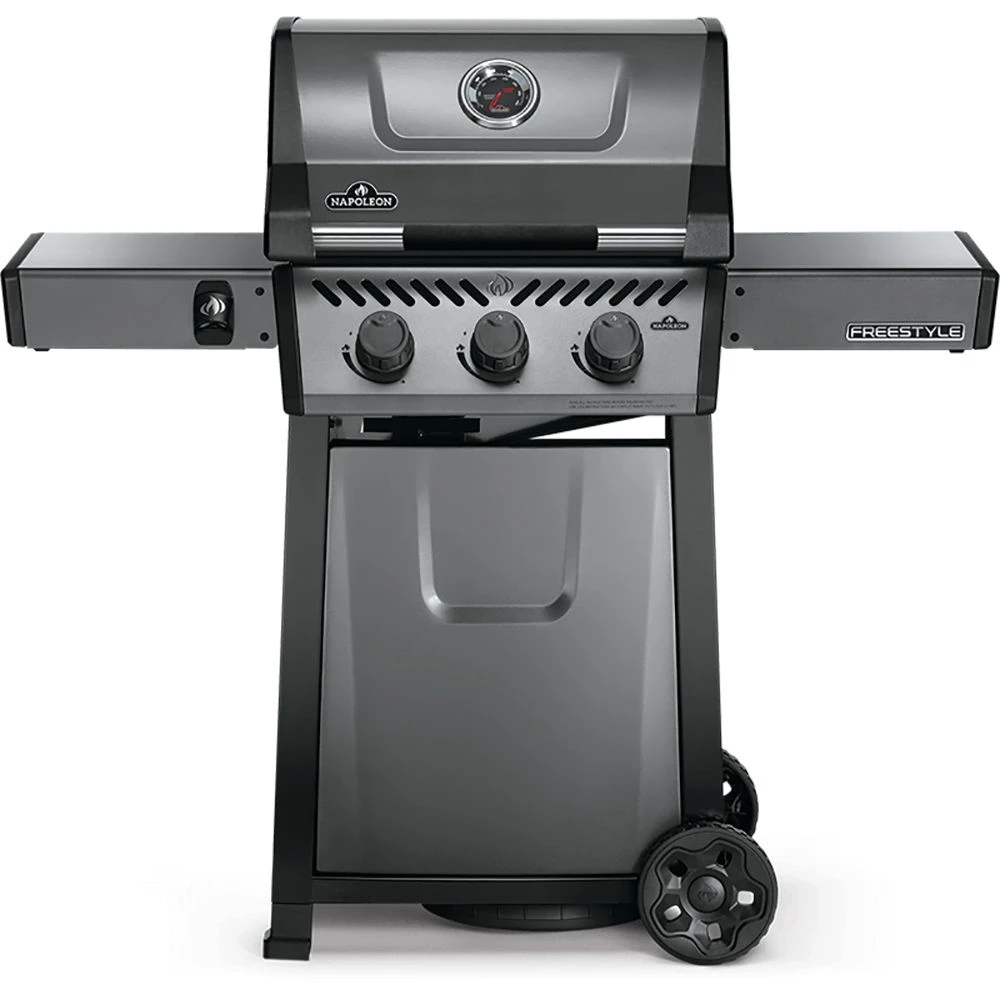 Napoleon F365DGT Freestyle 365 Gas Grill On Cart serves up a high-quality grill that combines innovative tech with modern convenience features for a top-notch cooking experience. Napoleon’s signature JETFIRE ignition ensures an easy and reliable start up every time, and the iconic Wave cooking grids built from porcelain-coated cast iron provide the kind of sear marks every grillmaster loves to see. The foldable side shelves feature tool hooks and a built-in bottle opener for an all-in-one backyard hub.