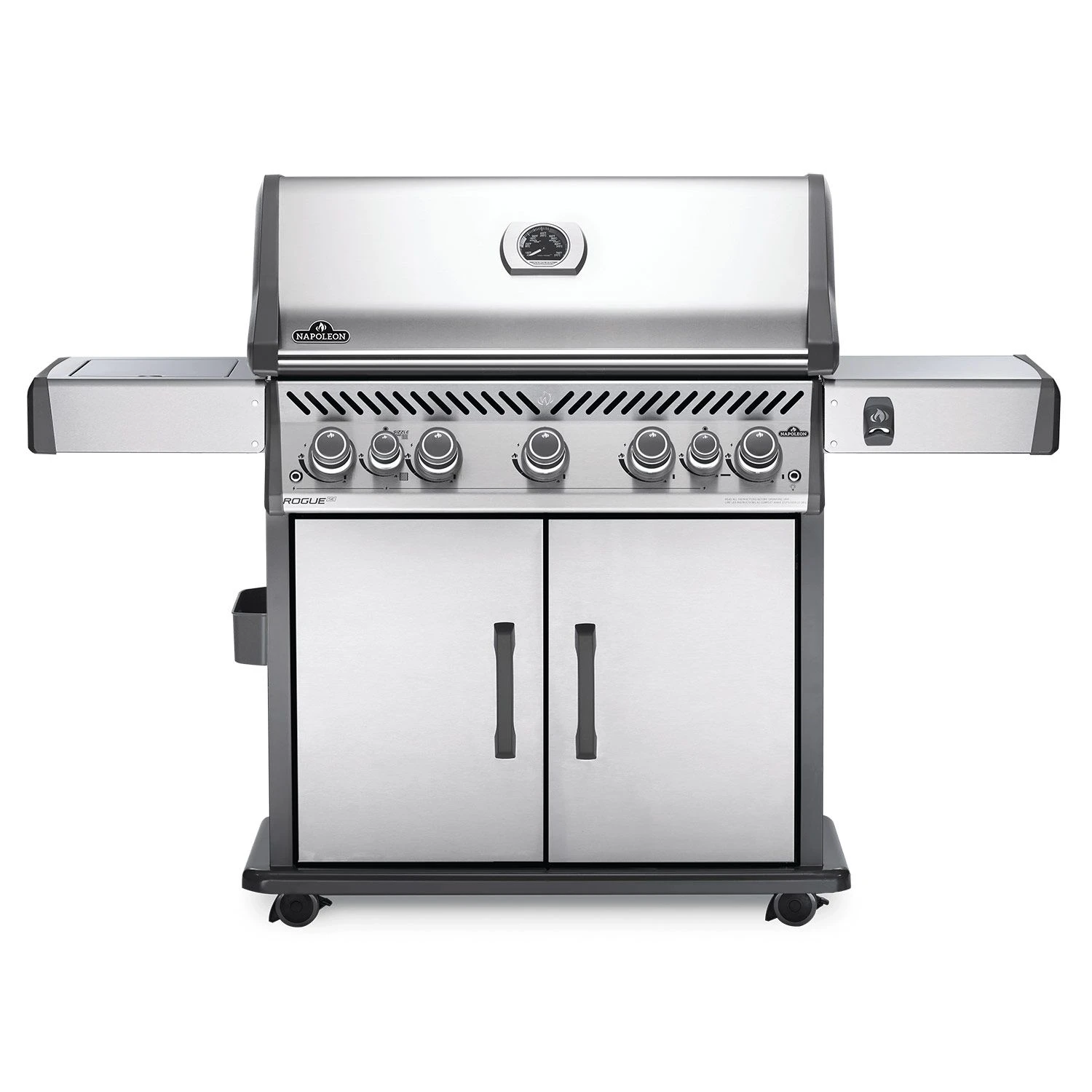 Napoleon RSE625RSIBSS Rogue SE 625 Gas Grill on Cart with Infrared Side and Rear Burners, 34.75-Inches offers an impressive grilling package in an attractive design. Featuring durable stainless steel construction, the Napoleon Rogue SE will be a mainstay at your backyard barbecues for many years to come. Featuring five main burners, a rear rotisserie burner, and a high top lid, this grill offers dynamic cooking potential as well as a convenient design. An integrated sear station helps create restaurant-style results, while generous side shelf space ensures you’ll always have plenty of room to add finishing touches when prepping your meals.