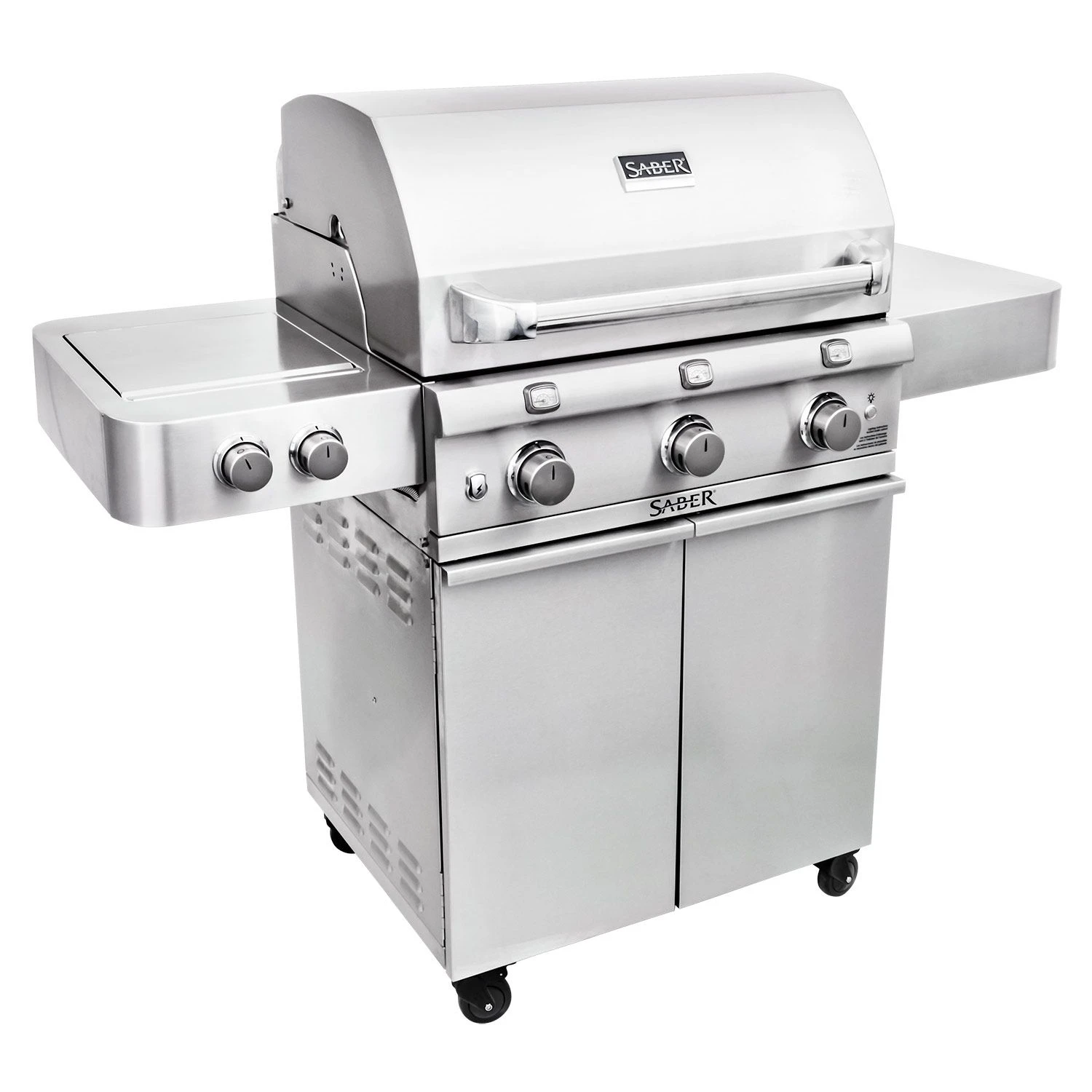 Saber R50SC0017 3-Burner Deluxe Freestanding Infrared Grill with Side Burner, 32-Inches provides a premium addition to your outdoor kitchen. This grill brings restaurant quality results to your home with its patented Saber Cooking System. This innovative burner design heats evenly, eliminates flare-ups, and uses up to 30 percent less gas than comparable burners. This grill also offers a wider temperature range than traditional grills–from high temperature searing to low and slow roasting and everything in between. The Saber infrared can also pre-heat to searing temperatures in only 12 minutes to reduce the time it takes to get your food from grill to plate. When you’re finished grilling, the easy-to-clean design of the Saber grill allows food drippings to be burned off and brushed away with ease to save you even more time.