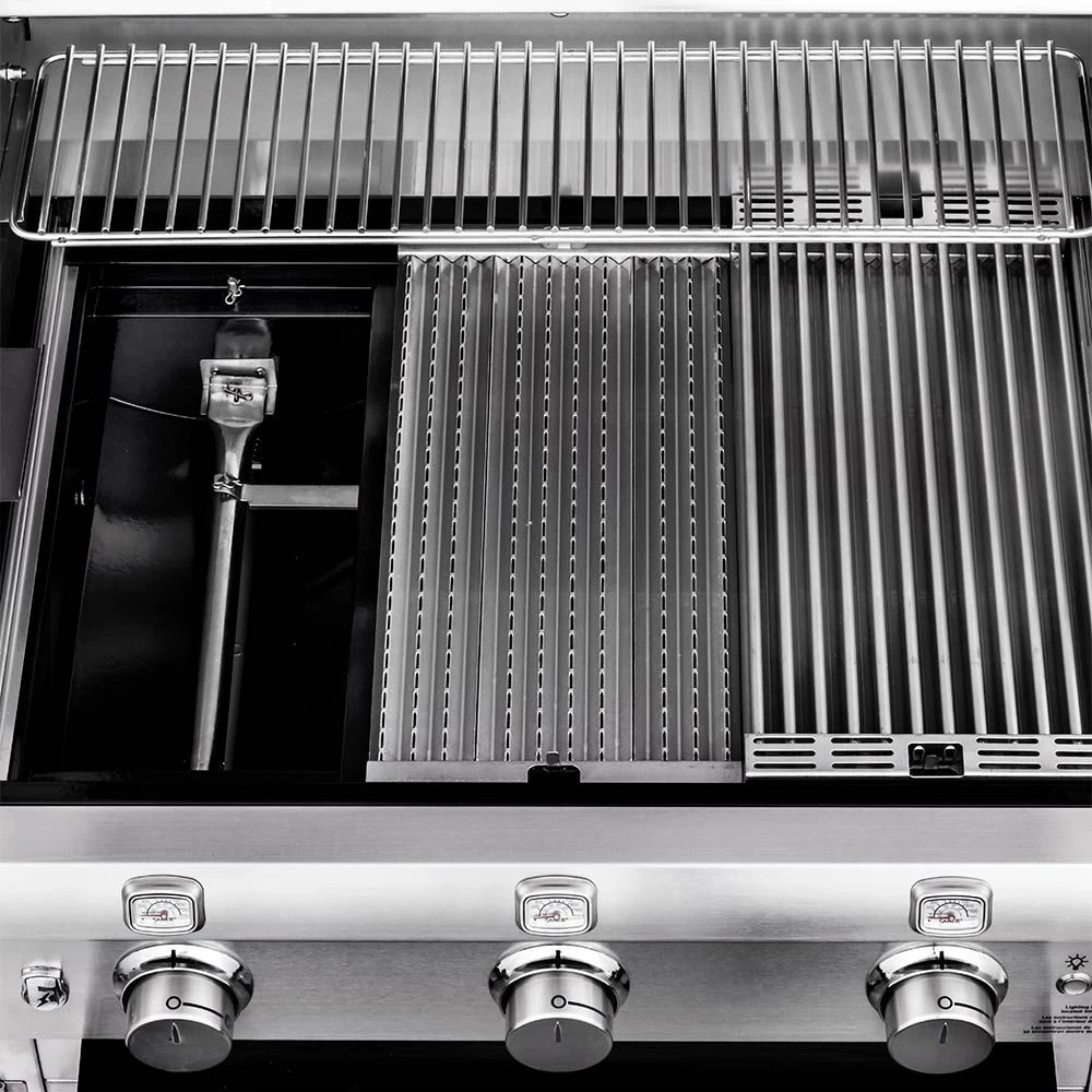 With its heavy duty 304 stainless steel construction, this Saber Stainless Series grill offers a time-tested design. A seamless welded stainless steel lid provides weather resistance as well as a quality appearance, while a multi-functional stainless steel warming rack offers versatility for your outdoor kitchen. Rounding out this grill’s impressive design is its internal halogen lights for improved nighttime visibility to give you everything you need for a premium grilling experience.