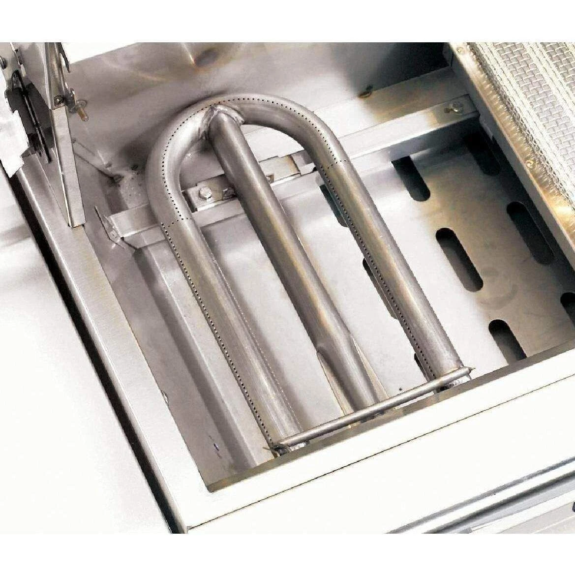 - Stainless Steel Tube Burner Heavy duty stainless steel tube burner with a commercial burner design rated for up to 23,000 BTU and feature a lifetime warranty while the unique ceramic radiant briquettes trays are located above the burners to radiate heat evenly and efficiently to simulate cooking with charcoal for a professional-style grilling experience