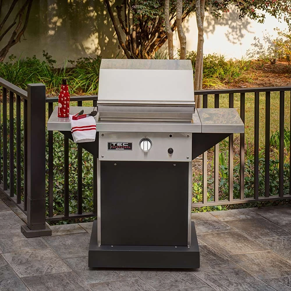 TEC Patio 1 FR Infrared Gas Grill On Pedestal, 26-Inches provides the grill enthusiast with a high performance infrared grill on a freestanding pedestal. The grill head and side shelves feature a complete 304 stainless steel construction while the supporting pedestal features either a black powder coated metal or stainless steel construction. The Patio 1 FR puts out more than 30,000 BTU over a 296 square inch cooking surface, all while using less than half the fuel of other infrared gas grills on the market. TEC’s infrared grill technology creates even heat distribution and eliminates moisture loss, allowing you to create meals packed with charbroiled flavor – the Patio 1 FR allows you to achieve high quality results on a consistent basis.